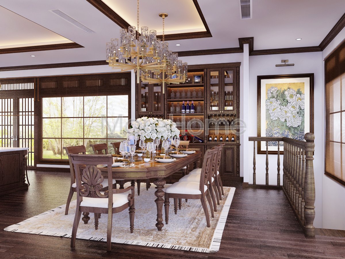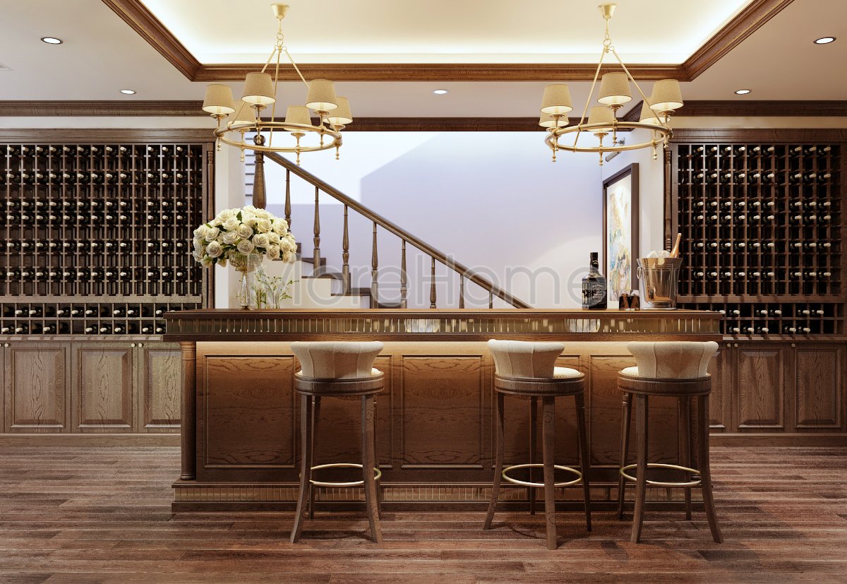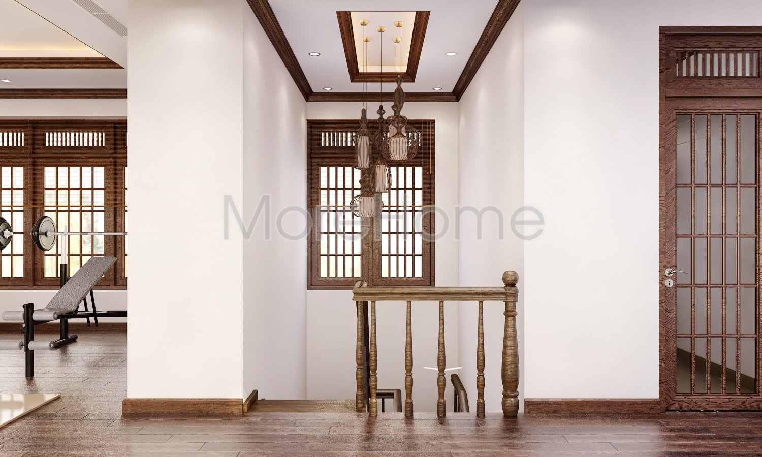 Cầu thang gỗ cổ điển biệt thự TP Pleiku