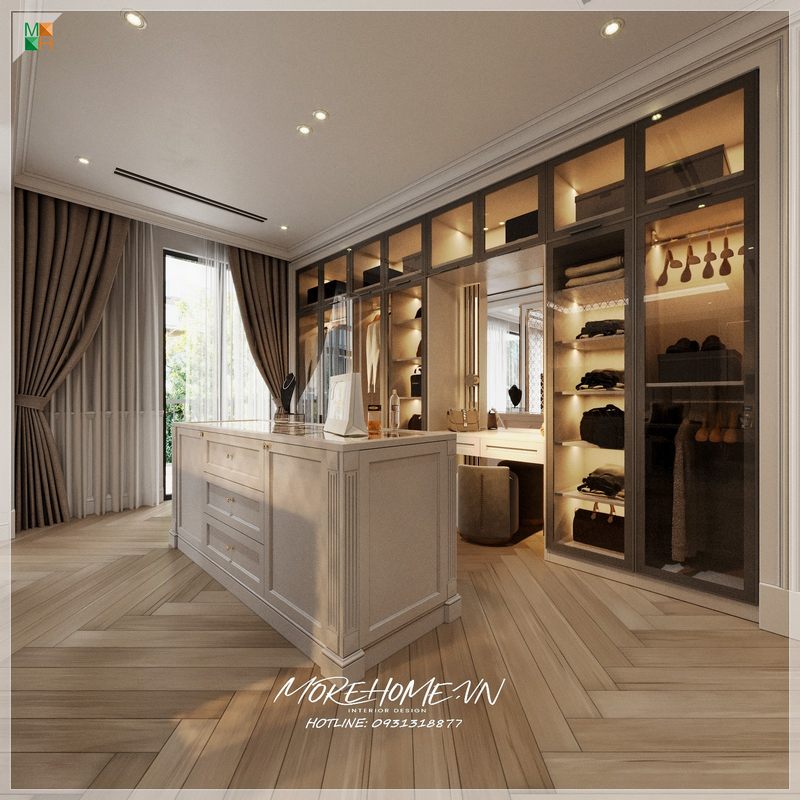Màu sắc sàn nhà là một yếu tố quan trọng trong việc thiết kế không gian phòng thay đồ. Để tạo nên sự ấn tượng và tạo điểm nhấn cho không gian căn phòng, các kiến trúc sư cùng các chủ đã cho ra giải pháp tuyệt vời. Sàn nhà hình xương các với gam màu trung tính để tạo nên sự đẳng cấp, sang trọng cho căn phòng.